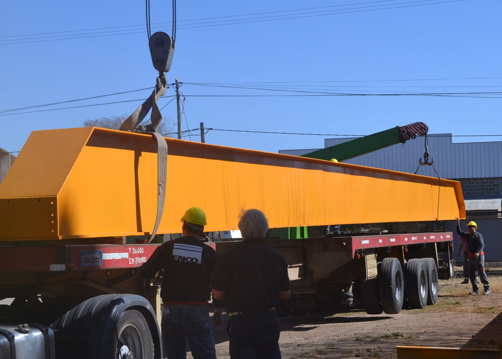 Fabricación de estructuras metálicas para vigas cajón de puentes grúa. Soldadura del riel de rodadura del carro y placas para montaje de vigas testeras motorizadas. Montaje, alineado y soldadura de rieles de rodadura