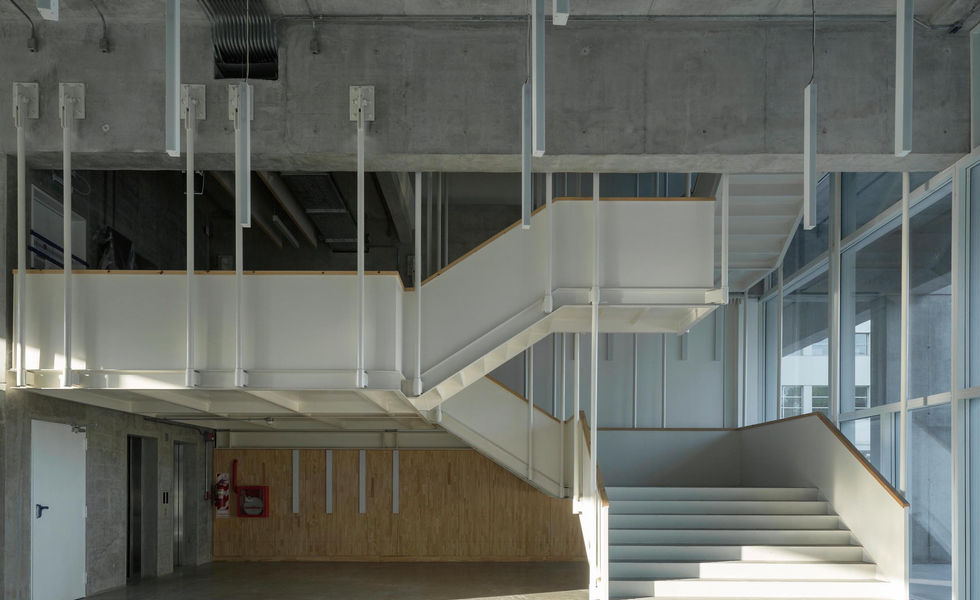 Construcción y montaje de las estructuras metálicas para el nuevo edificio de la Universidad Torcuato Di Tella. Columnas, vigas, entrepisos de hormigón con sistema steel deck, pasarelas de unión de edificios y escalera metálica suspendida única en su tipo